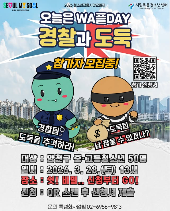 - [¸ðÁý] 2026³â û¼Ò³âÀü¿ë½Ã°£¿äÀÏÁ¦ "¿À´ÃÀº WAÇÃDAY" °æÂû°ú µµµÏ Âü°¡ÀÚ ¸ðÁý!!2026.03.21