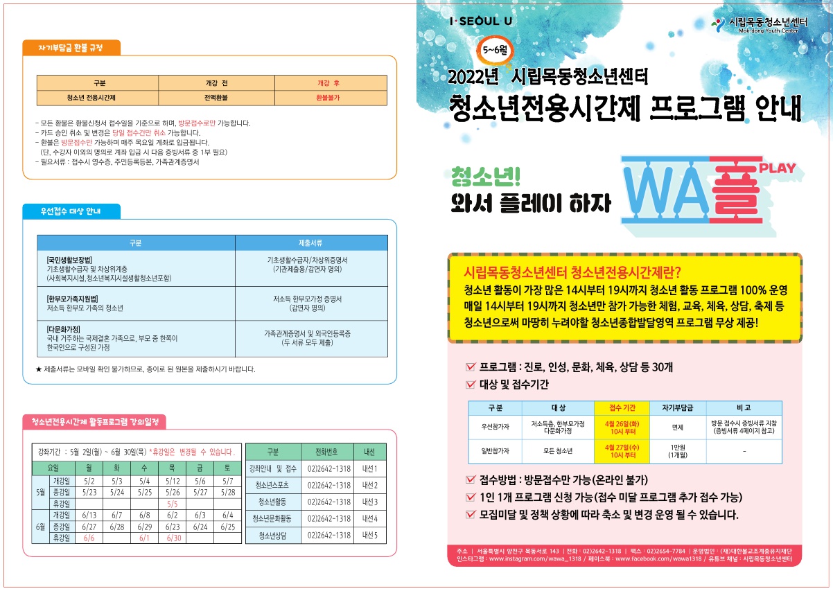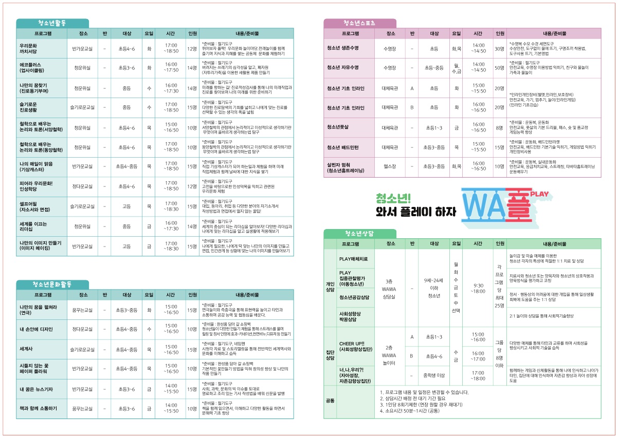 | û¼Ò³âÀü¿ë½Ã°£Á¦ WAÇà 5~6¿ù û¼Ò³âȰµ¿ÇÁ·Î±×·¥ ¾È³» | ||
