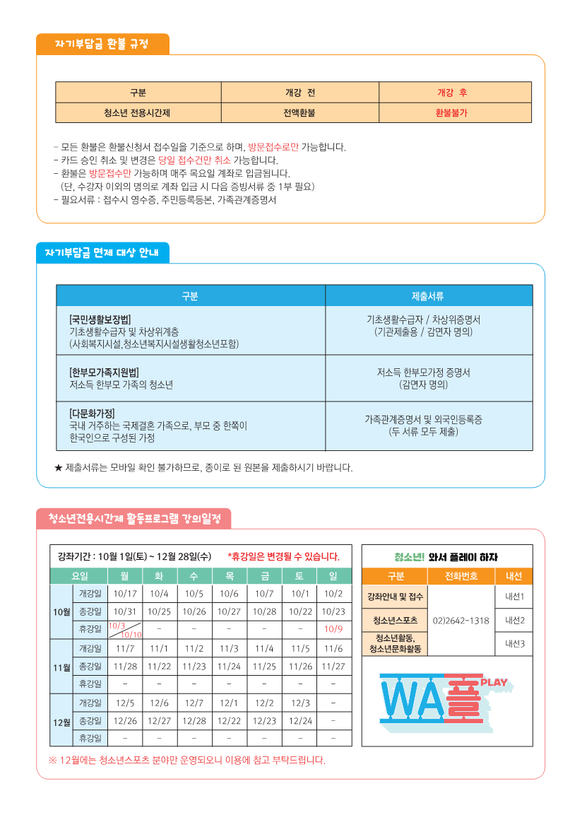 | û¼Ò³âÀü¿ë½Ã°£Á¦ WAÇà 10~12¿ù û¼Ò³âȰµ¿ÇÁ·Î±×·¥ ¾È³» | ||