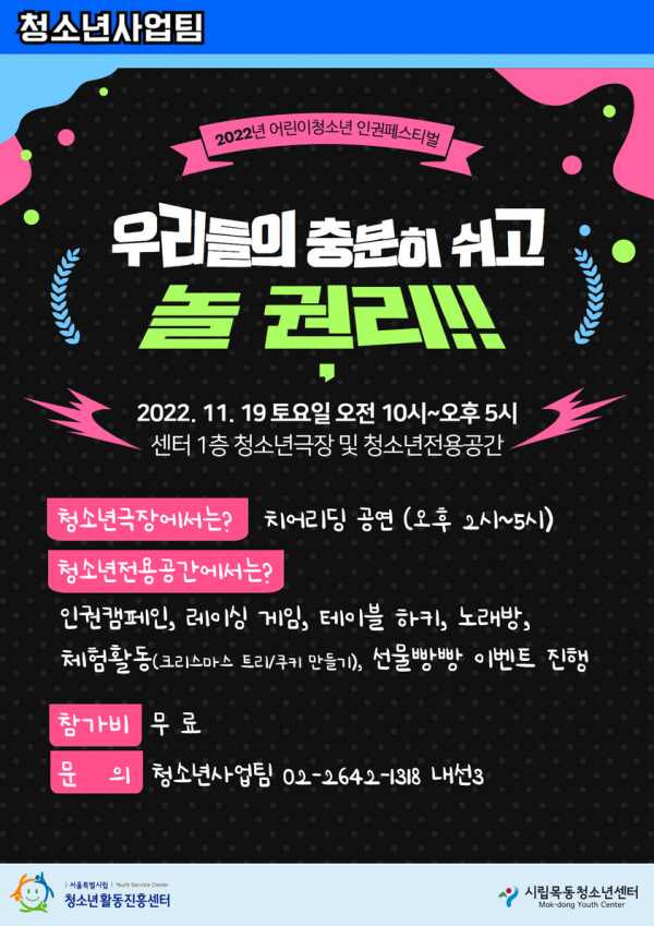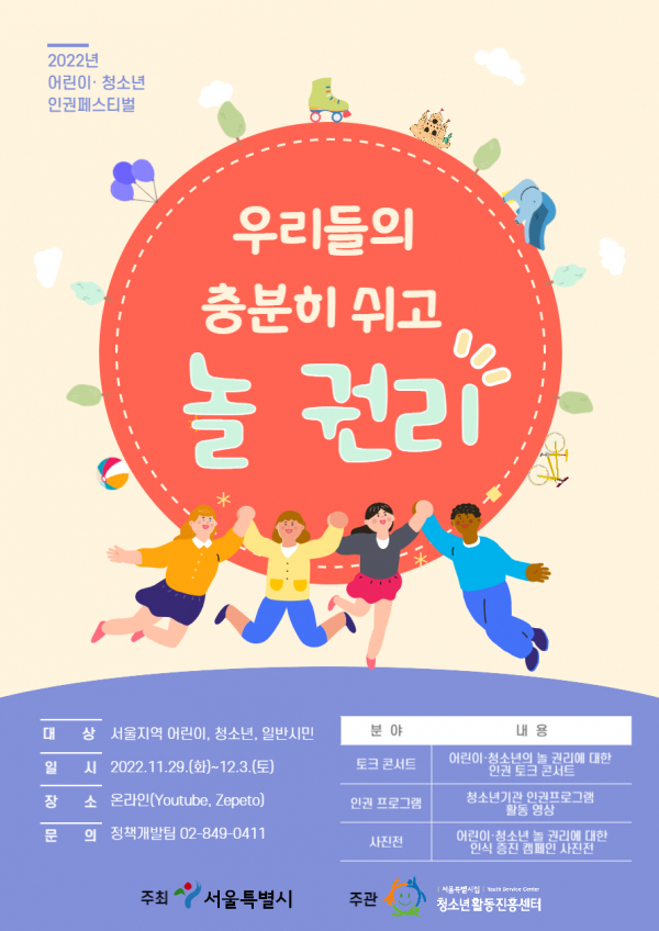 | [¸¶°¨] 2022³â ¾î¸°ÀÌ¡¤Ã»¼Ò³â ÀÎ±ÇÆä½ºÆ¼¹ú¡¸¿ì¸®µéÀÇ ÃæºÐÈ÷ ½¬°í ³î ±Ç¸®¡¹¾È³» | ||