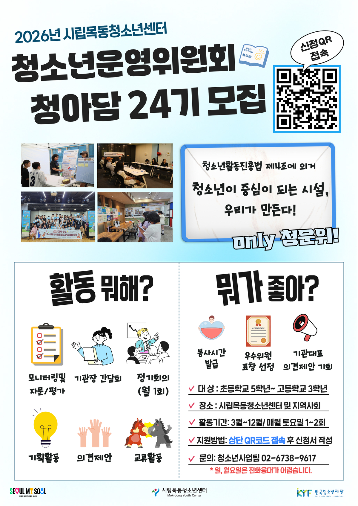 | [µ¿¾Æ¸® ¸ðÁý] 2026³â û¼Ò³â¿î¿µÀ§¿øÈ¸ "û¾Æ´ã" 24±â À§¿ø ¸ðÁý! | ||