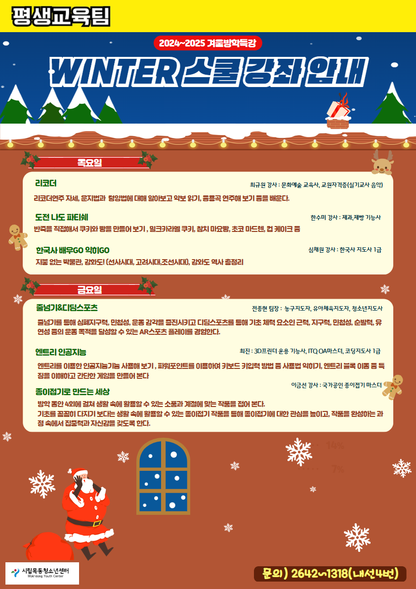 | ´ÙÀ½±Û | 2024~2025³â °Ü¿ï¹æÇÐÆ¯° Àü´ÜÁö (±³À°¹®È °Á¾ȳ» Æ÷ÇÔ) |