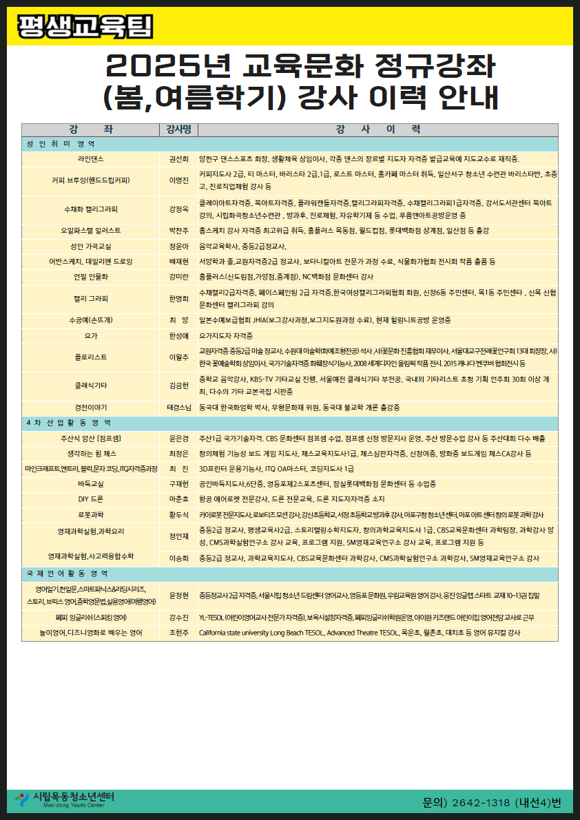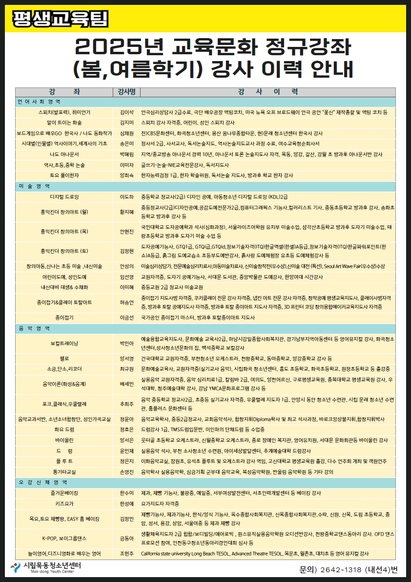 | 2025³â Æò»ý±³À°ÆÀ ±³À°¹®È Á¤±Ô°Á °»çÀÌ·Â ¾È³» | ||