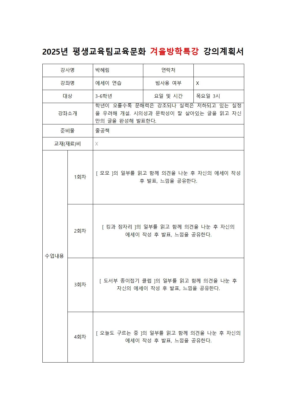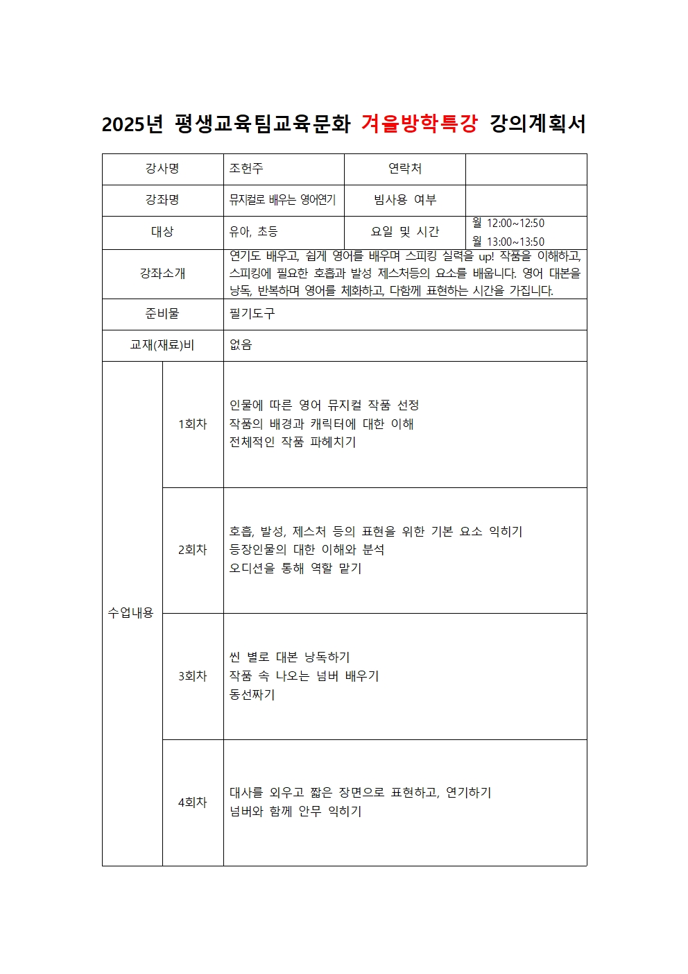 | ÀÌÀü±Û | 2025³â~2026³â °Ü¿ï¹æÇРƯ° °Àǰèȹ¼(¿À°¨½Åü, À½¾Ç, ¹Ì¼ú) |