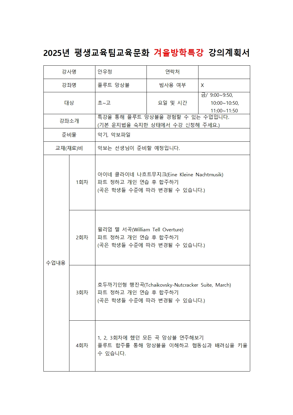 | 2025³â~2026³â °Ü¿ï¹æÇРƯ° °Àǰèȹ¼(¿À°¨½Åü, À½¾Ç, ¹Ì¼ú) | ||