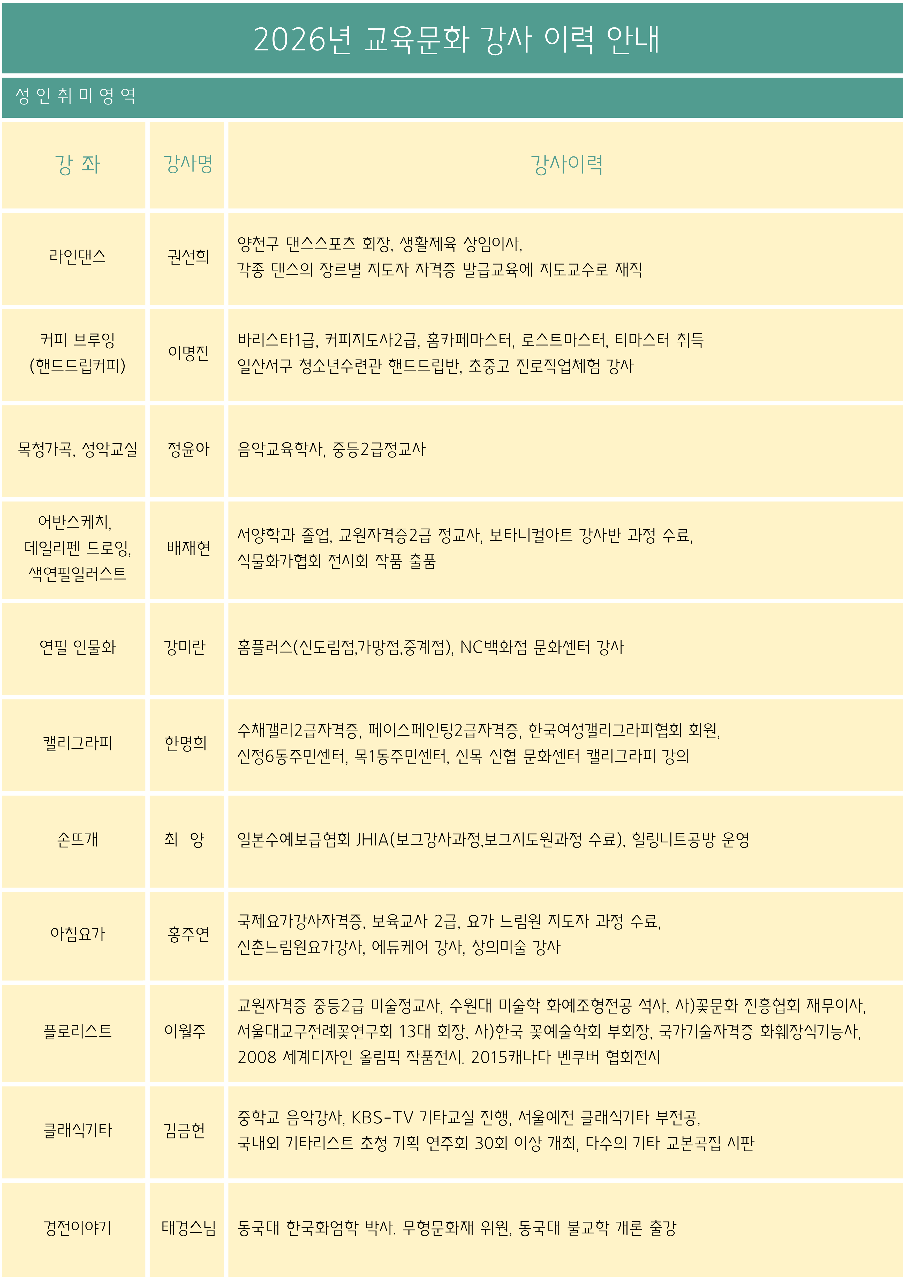 | 2026³â Æò»ý±³À°ÆÀ ±³À°¹®È Á¤±Ô°Á °»çÀÌ·Â ¾È³» | ||