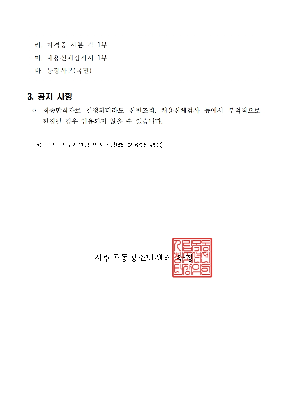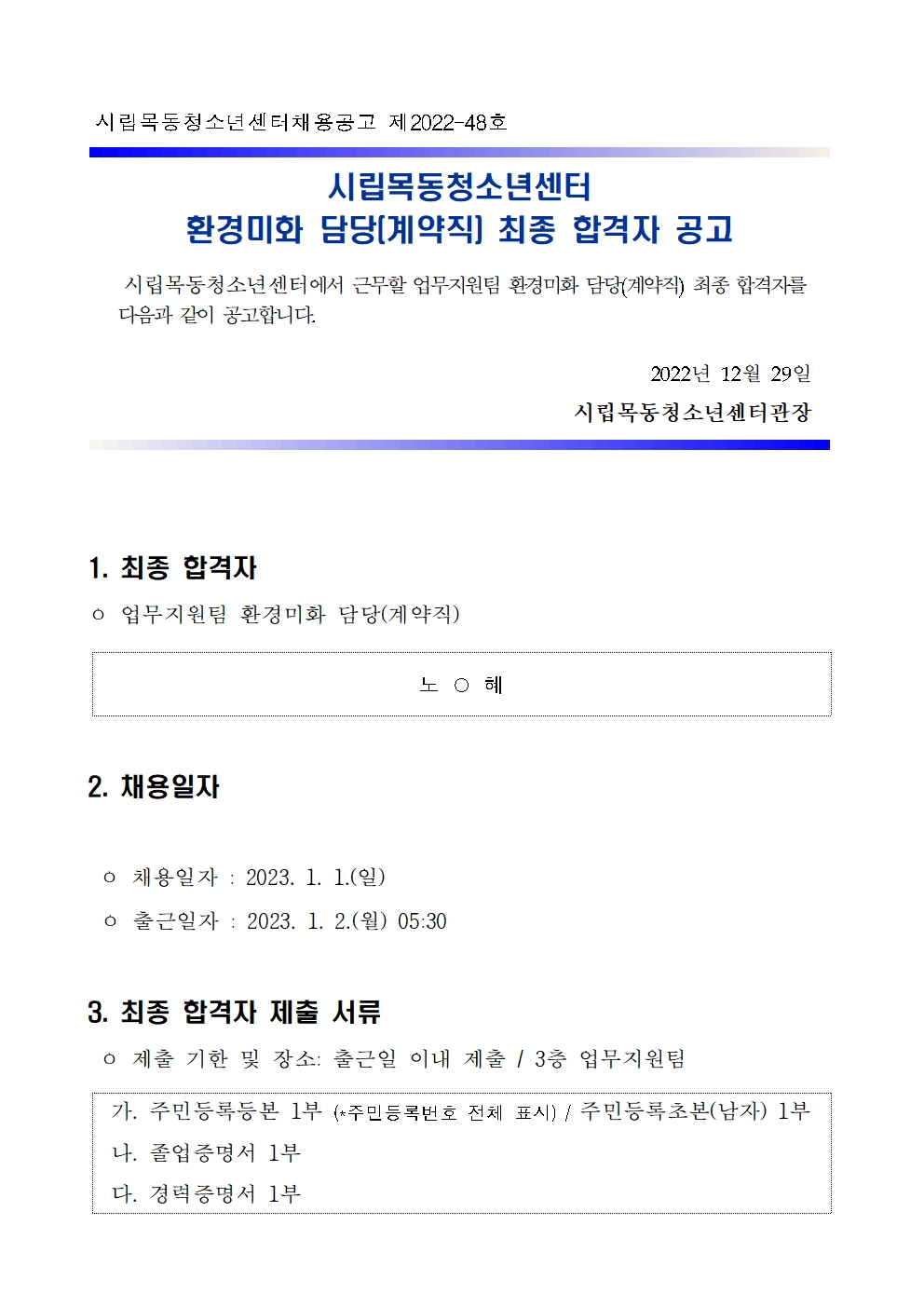 | [½Ã¸³¸ñµ¿Ã»¼Ò³â¼¾ÅÍ] ¾÷¹«Áö¿øÆÀ ȯ°æ¹ÌÈ(°è¾àÁ÷) ÃÖÁ¾ ÇÕ°ÝÀÚ °ø°í | ||