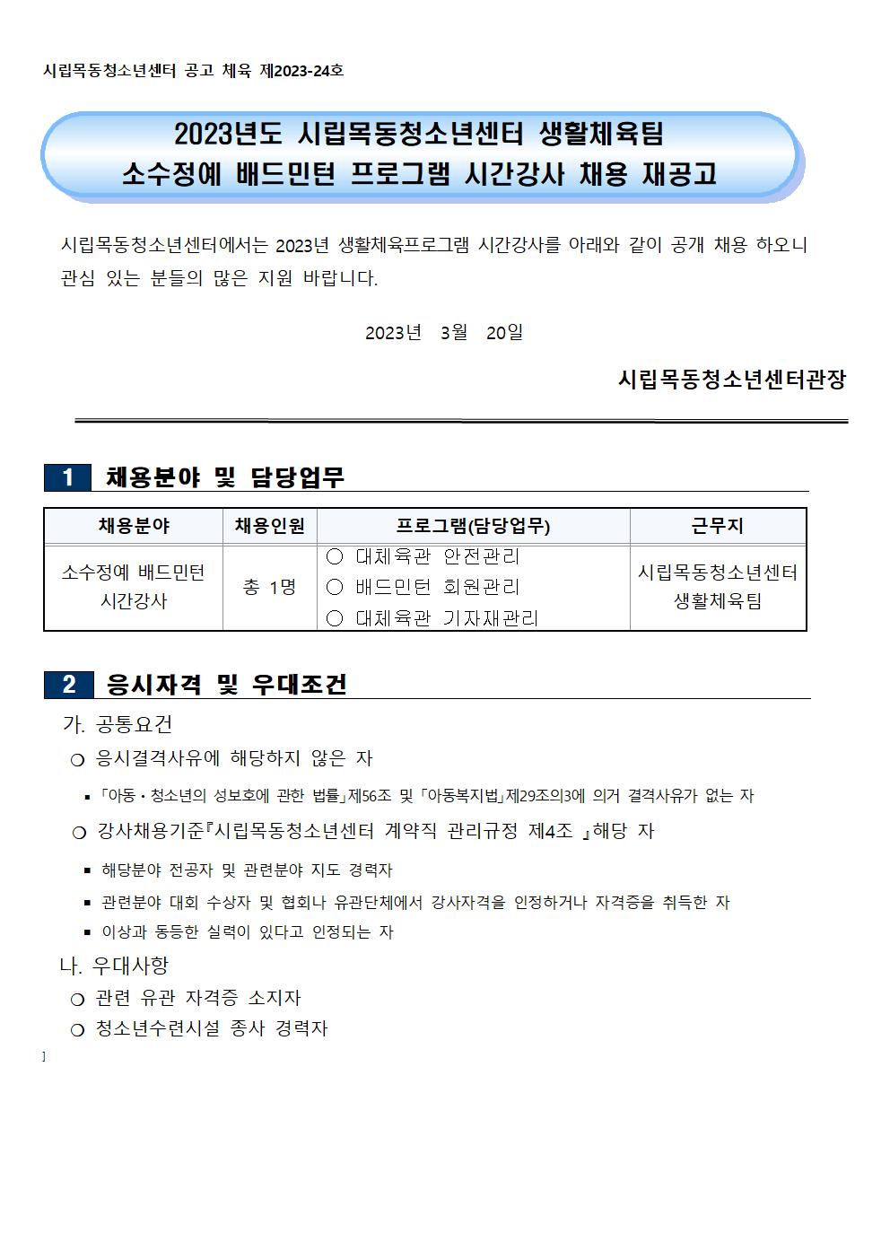 | ´ÙÀ½±Û | [½Ã¸³¸ñµ¿Ã»¼Ò³â¼¾ÅÍ] û¼Ò³â»ç¾÷ÆÀ û¼Ò³âȰµ¿ ÇÁ·Î±×·¥ ½Ã°£°»ç 2Â÷ ä¿ë °ø°í |
