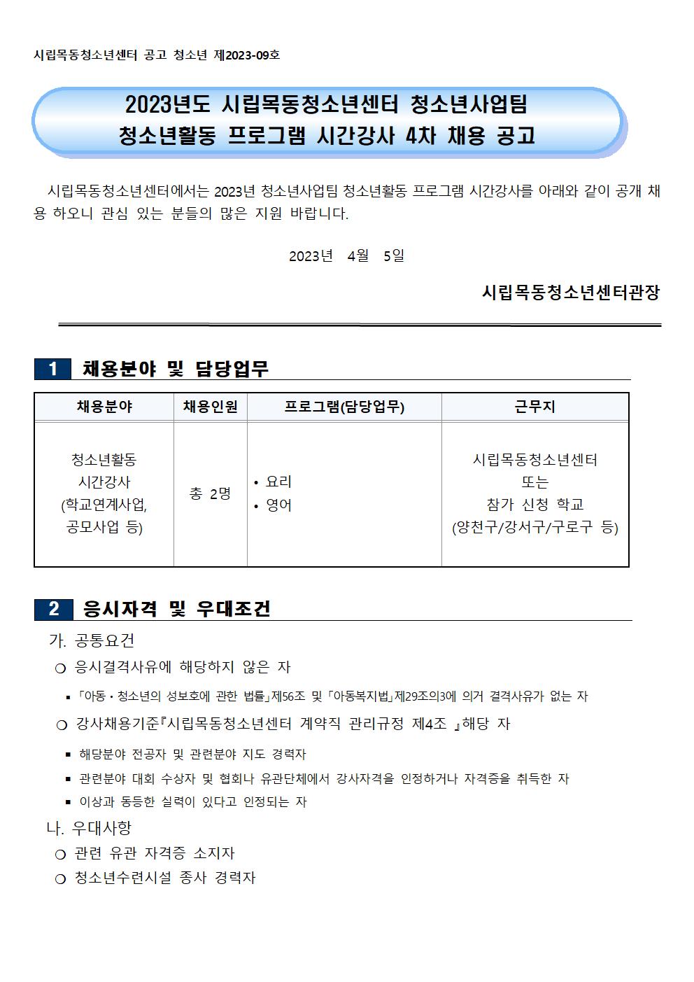| [½Ã¸³¸ñµ¿Ã»¼Ò³â¼¾ÅÍ] û¼Ò³â»ç¾÷ÆÀ û¼Ò³âȰµ¿ ÇÁ·Î±×·¥ ½Ã°£°»ç 4Â÷ ä¿ë °ø°í | ||
