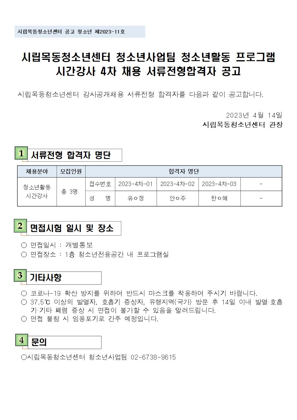| [ ½Ã¸³¸ñµ¿Ã»¼Ò³â¼¾ÅÍ] û¼Ò³â»ç¾÷ÆÀ û¼Ò³âȰµ¿ ÇÁ·Î±×·¥ ½Ã°£°»ç 4Â÷ ä¿ë ¼·ùÀüÇüÇÕ°ÝÀÚ °ø°í | ||