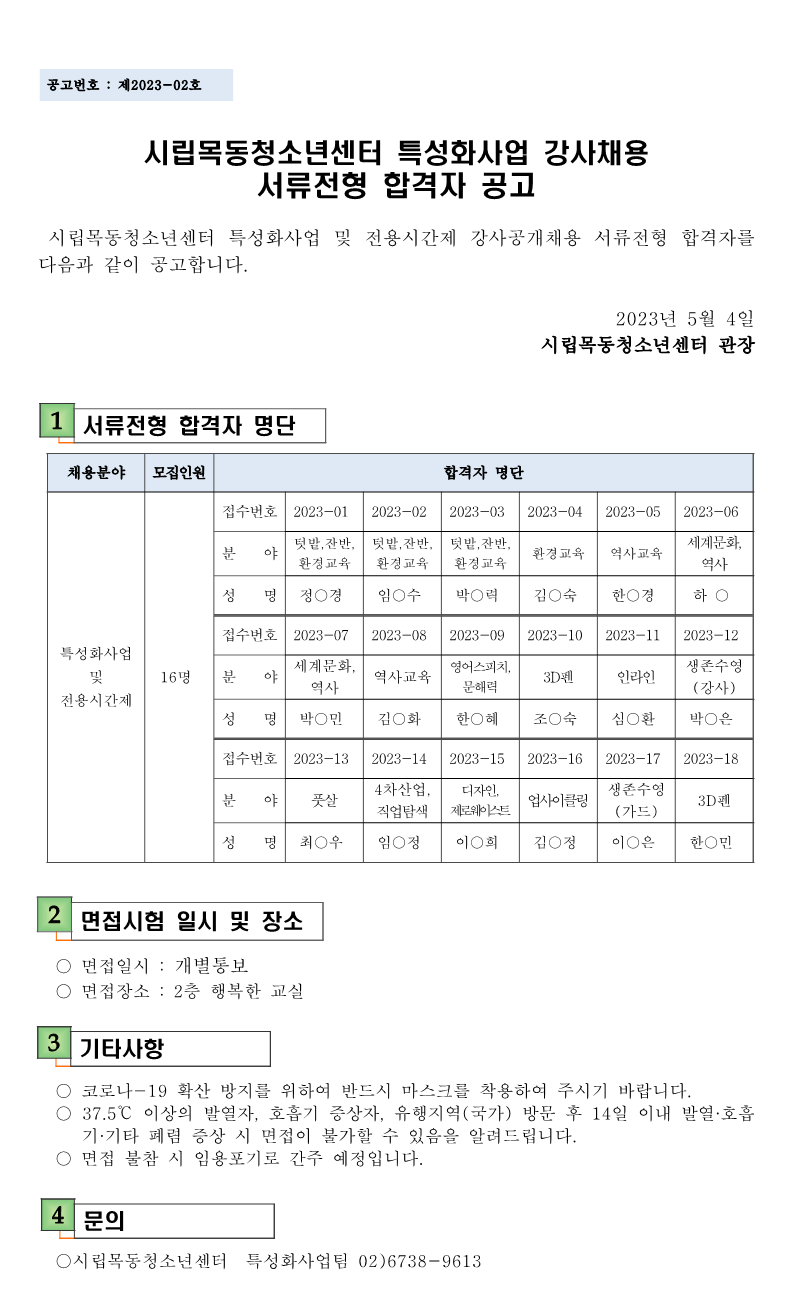 | [½Ã¸³¸ñµ¿Ã»¼Ò³â¼¾ÅÍ] Ư¼ºÈ»ç¾÷ ¹× û¼Ò³âÀü¿ë½Ã°£Á¦ 2Â÷ ½Ã°£°»ç ä¿ë ¼·ùÀüÇü ÇÕ°ÝÀÚ °ø°í | ||