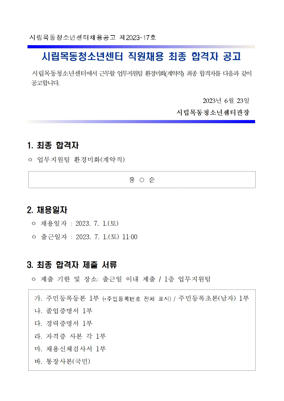 | [½Ã¸³¸ñµ¿Ã»¼Ò³â¼¾ÅÍ] ¾÷¹«Áö¿øÆÀ ȯ°æ¹ÌÈ(°è¾àÁ÷) ä¿ë ÃÖÁ¾ ÇÕ°ÝÀÚ °ø°í | ||