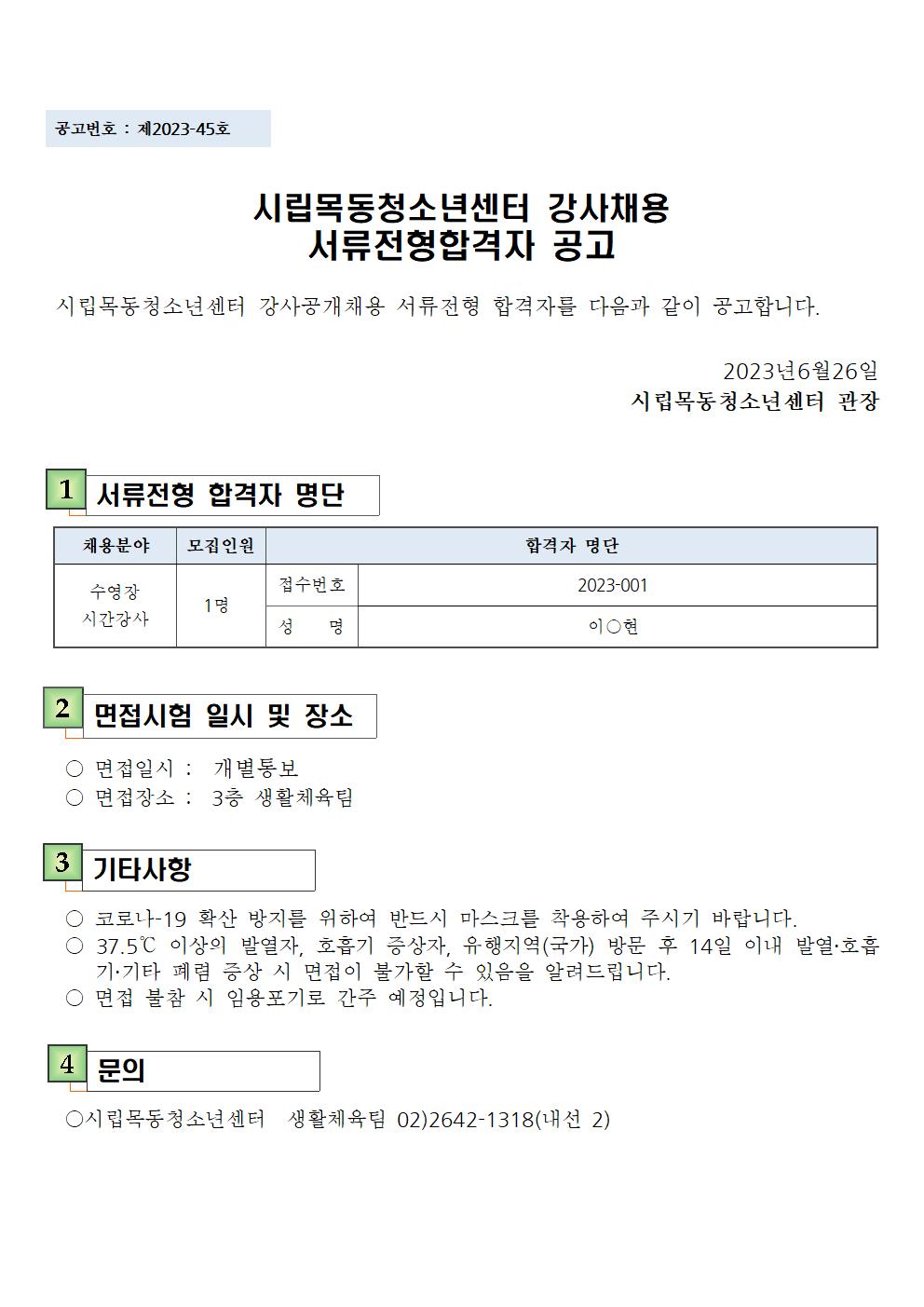 | [½Ã¸³¸ñµ¿Ã»¼Ò³â¼¾ÅÍ]»ýȰüÀ°ÆÀ ¼ö¿µÀå ½Ã°£°»ç ¼·ùÀüÇü ÇÕ°ÝÀÚ °ø°í | ||