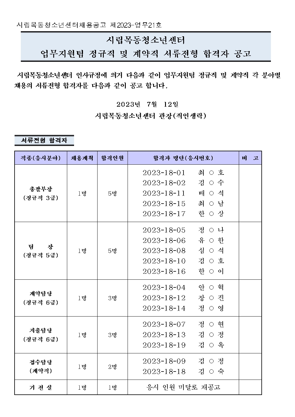 | [ä¿ë°ø°í] ¾÷¹«Áö¿øÆÀ Á¤±ÔÁ÷ ¹× °è¾àÁ÷ Á÷¿øÃ¤¿ë ¼·ùÀüÇü ÇÕ°ÝÀÚ °ø°í | ||