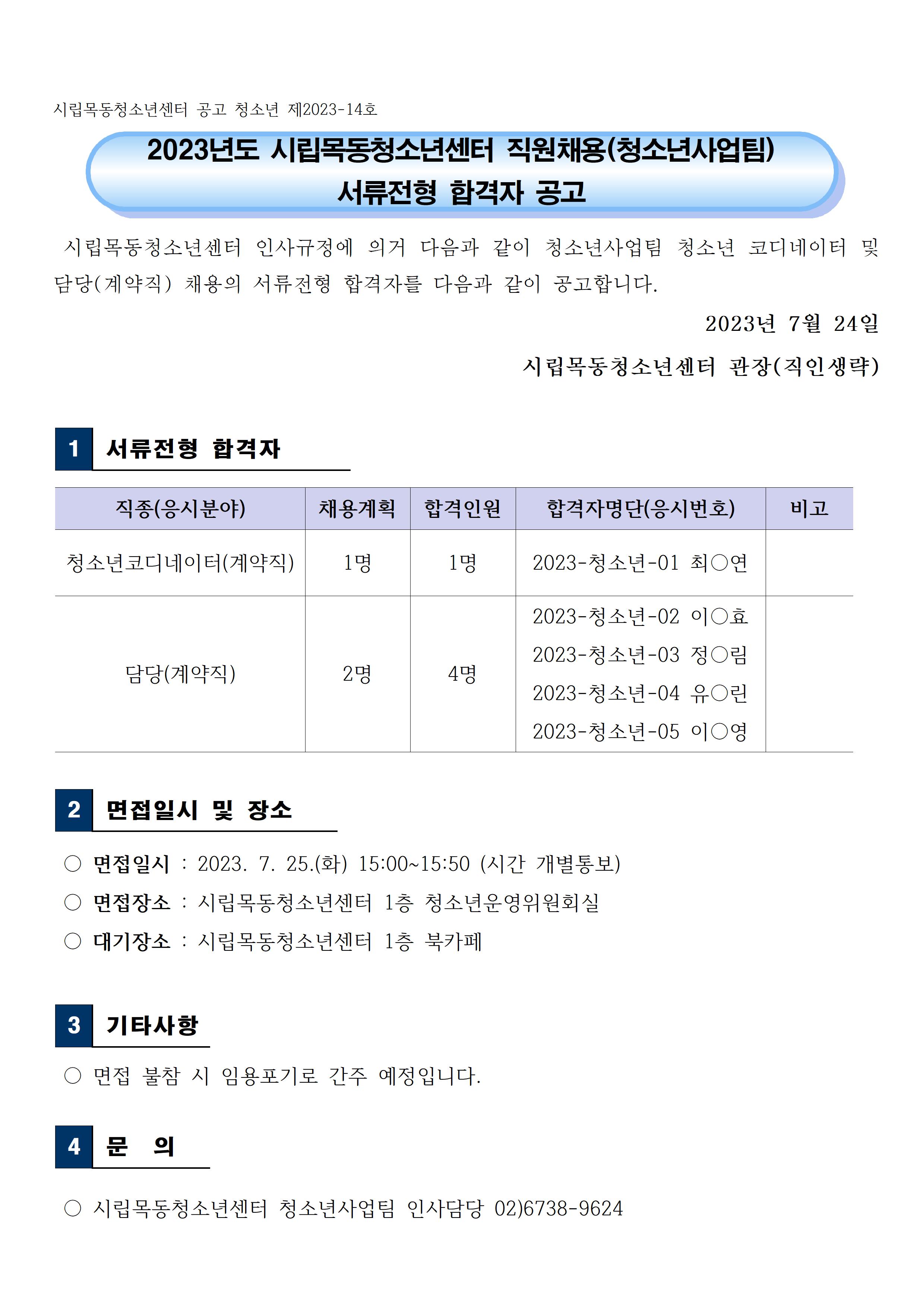 | [½Ã¸³¸ñµ¿Ã»¼Ò³â¼¾ÅÍ] û¼Ò³â»ç¾÷ÆÀ °è¾àÁ÷ ¼·ùÀüÇü ÇÕ°ÝÀÚ °ø°í | ||