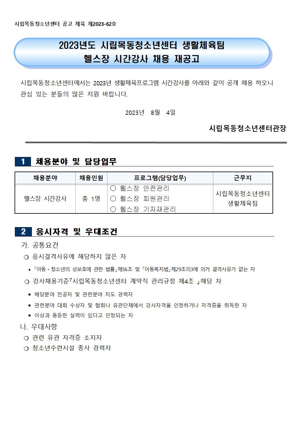 | [½Ã¸³¸ñµ¿Ã»¼Ò³â¼¾ÅÍ] »ýȰüÀ°ÆÀ ÇコÀå ½Ã°£°»ç ä¿ë °ø°í | ||