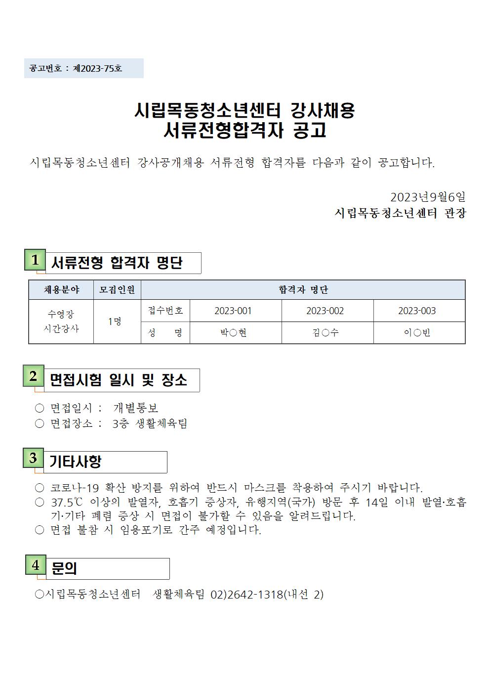 | [½Ã¸³¸ñµ¿Ã»¼Ò³â¼¾ÅÍ]»ýȰüÀ°ÆÀ ¼ö¿µÀå ½Ã°£°»ç ¼·ùÀüÇü ÇÕ°ÝÀÚ °ø°í | ||