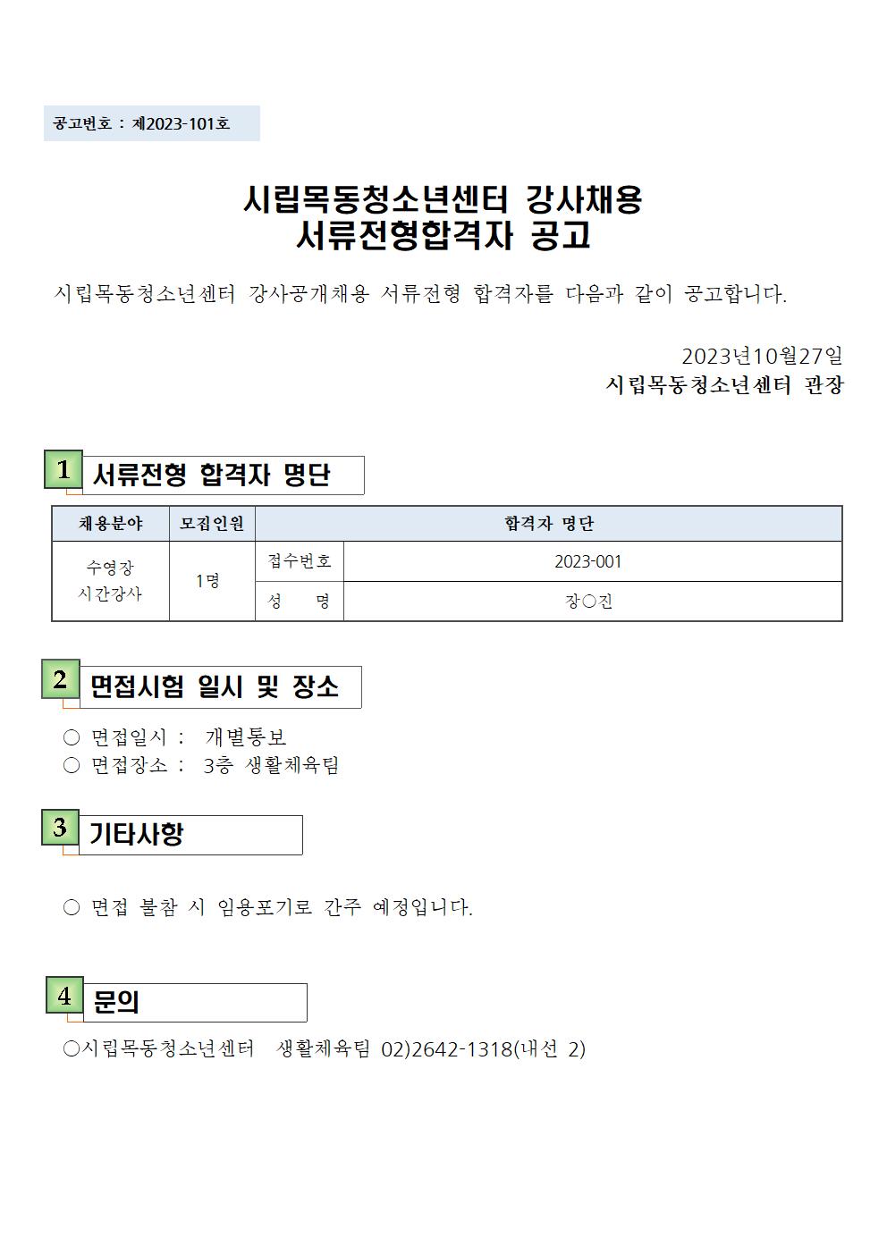 | [½Ã¸³¸ñµ¿Ã»¼Ò³â¼¾ÅÍ]»ýȰüÀ°ÆÀ ¼ö¿µÀå ½Ã°£°»ç ¼·ùÀüÇü ÇÕ°ÝÀÚ °ø°í | ||
