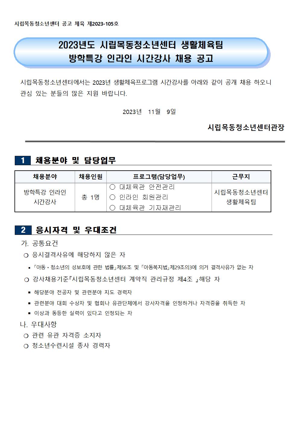 | [½Ã¸³¸ñµ¿Ã»¼Ò³â¼¾ÅÍ]»ýȰüÀ°ÆÀ ¹æÇÐÆ¯° ÀζóÀÎ ½Ã°£°»ç ä¿ë °ø°í | ||
