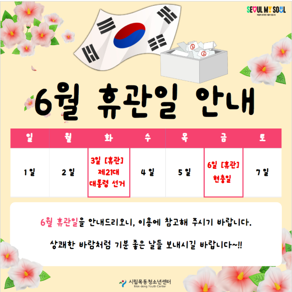 6¿ù ÈÞ°ü ¾È³» (Á¦21´ë ´ëÅë·É ¼±°Å, ÇöÃæÀÏ) | ||