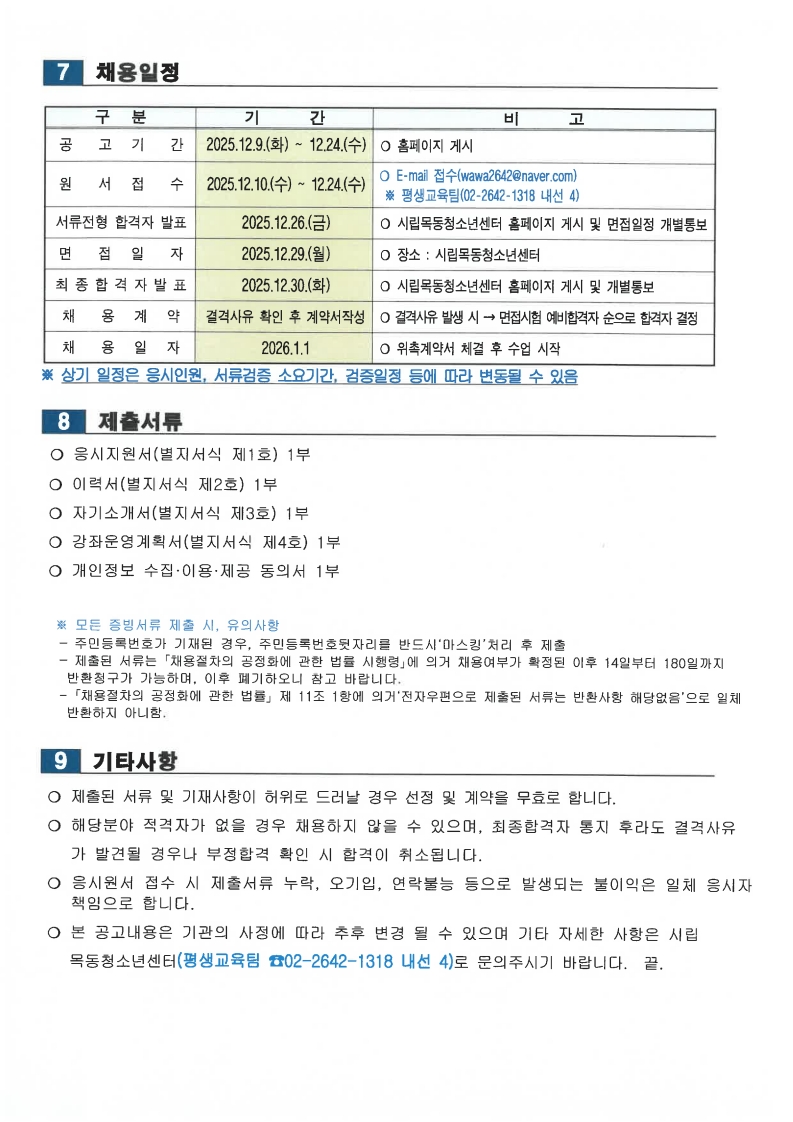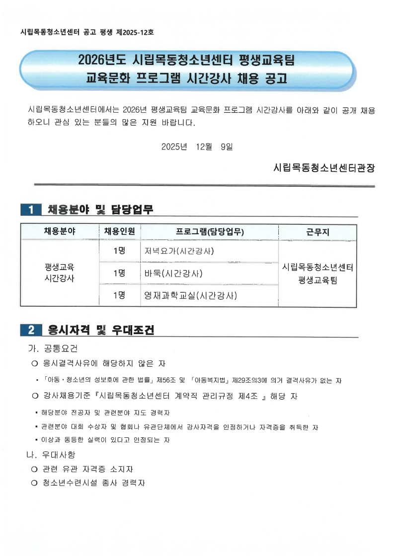 | [½Ã¸³¸ñµ¿Ã»¼Ò³â¼¾ÅÍ] 2025³â Æò»ý±³À°ÆÀ Á¤±Ô°Á °»ç °ø°³Ã¤¿ë °ø°í¹®(Àú³á¿ä°¡, ¹ÙµÏ, ¿µÀç°úÇÐ) | ||